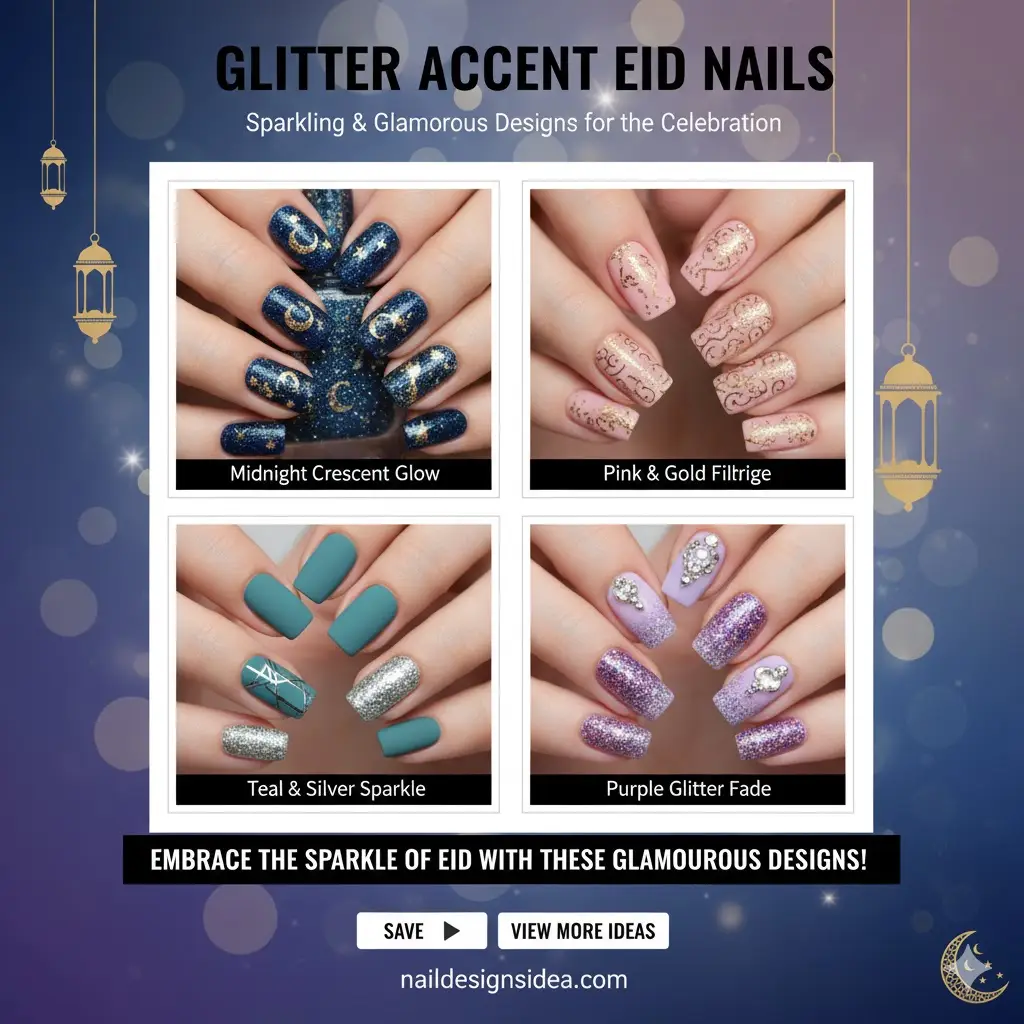 One glitter accent nail paired with soft pastel nails instantly elevates your manicure for Eid celebrations.